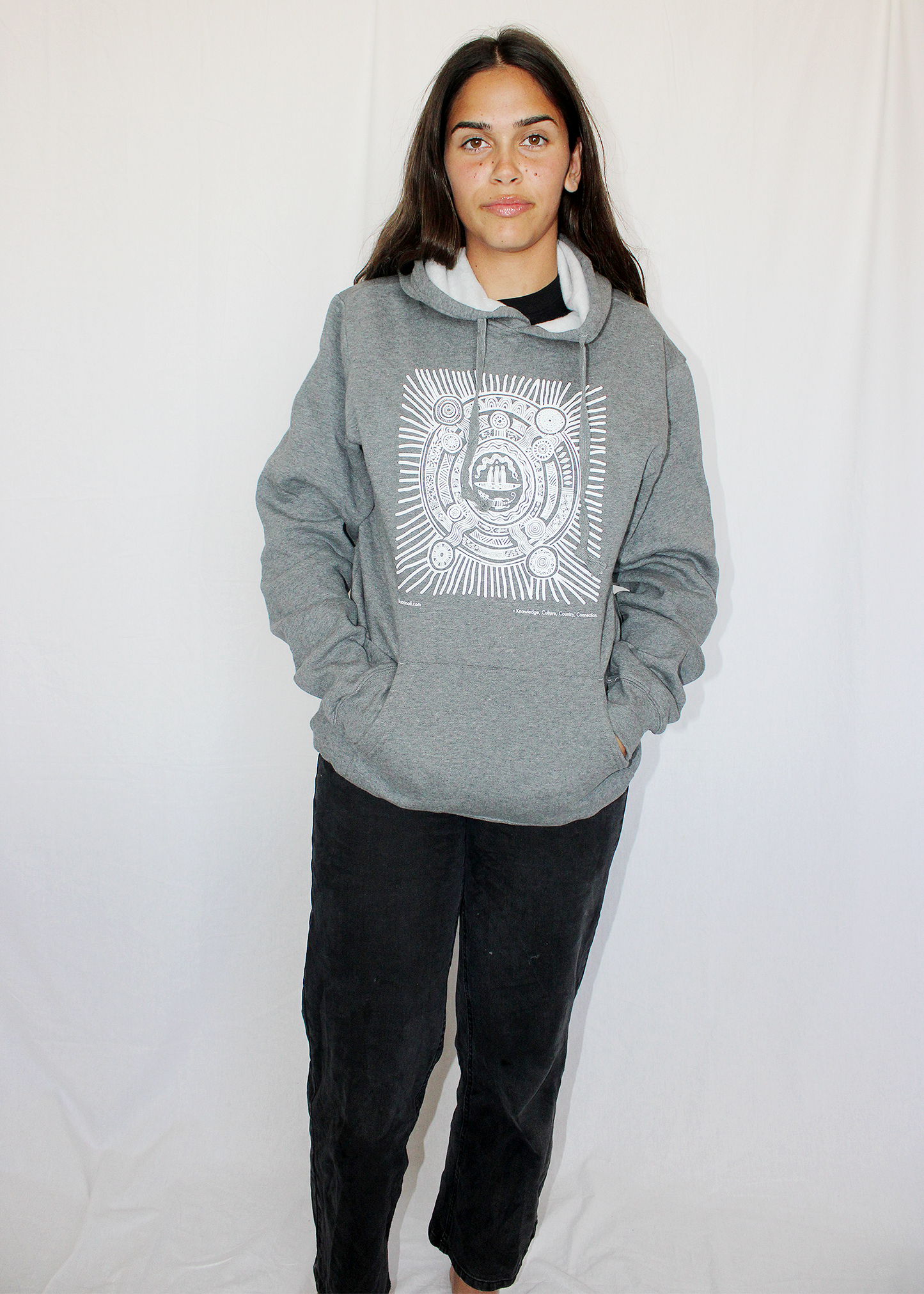 This artwork is based on the concentric circles of a Bora - Ring, (Casino having one of the biggest Bora Rings on Country) where people come together for Ceremony, initiation and for important business. Each layer represents different aspects of the overall story; whether it be cultural, natural, representational or technological. The Koori Mail brings many people together allowing them to share culture and exchange knowledge.